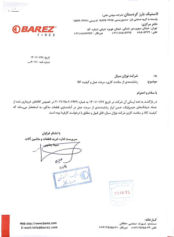 HYDARULIC HOSES CUSTOMER APPRECIATION LETTER, BAREZ TIRE CO.