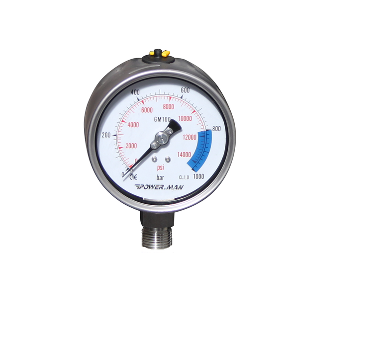 گیج های فشار به عنوان نشانگرهای مشخصه اصلی سیستم هیدرولیک که همانا فشار است، نقشی کلیدی در کنترل یک مدار هیدرولیک دارند. گیج های فشار پاورمن در فشارهای مختلف از 25 بار الی 3000 بار تولید می شوند.