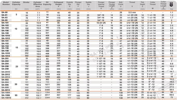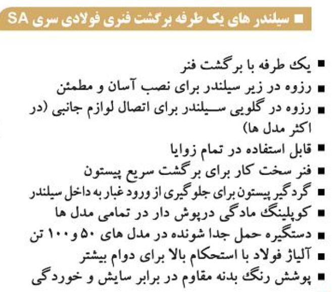 جک هیدرولیک 700 بار، سیلندر یک طرفه برگشت فنری سری SA معادل جک هیدرولیک ENERPAC سری RC و هایفورس HSS