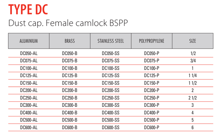 CAMLOCK COUPLING DUST CAP, TYPE DC